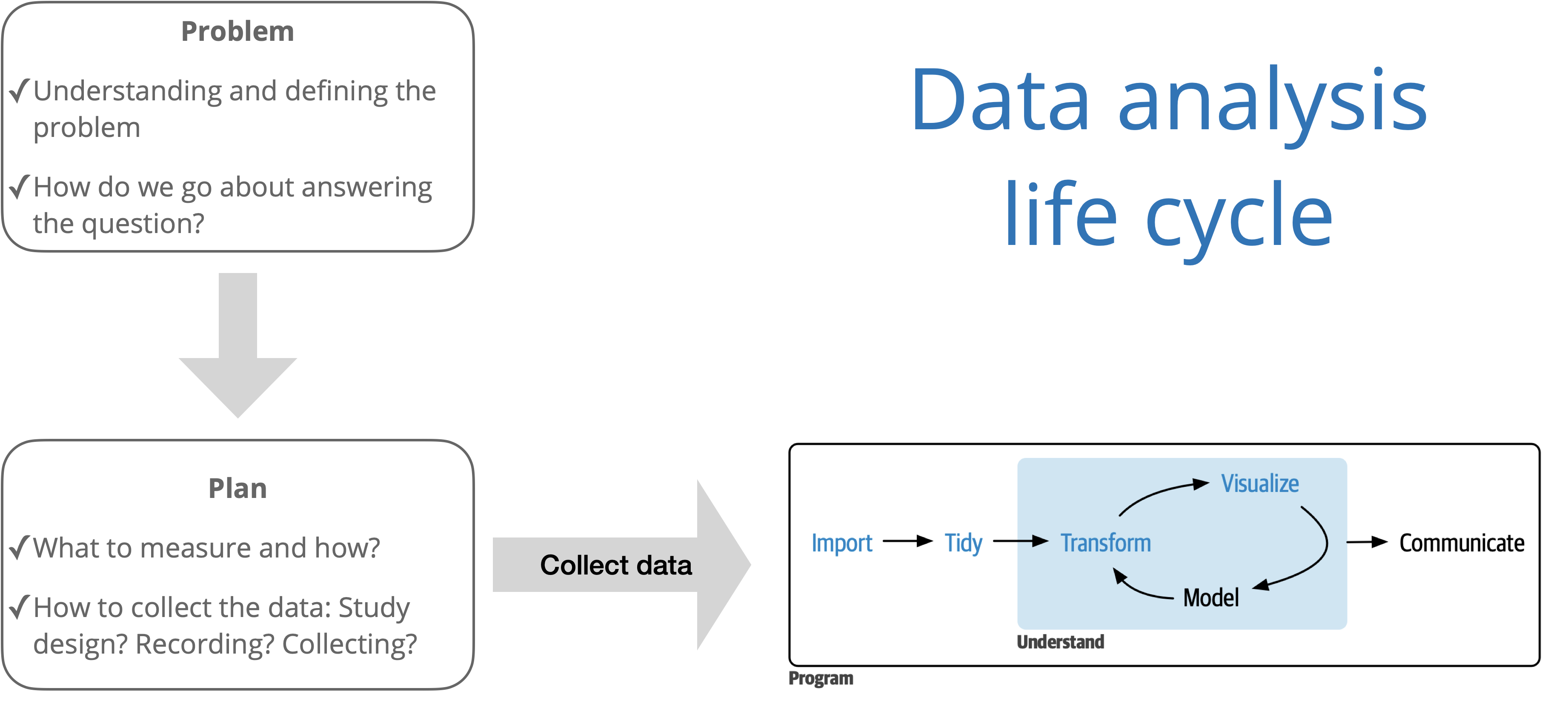 Source: R for Data Science with additions from The Art of Statistics: How to Learn from Data.